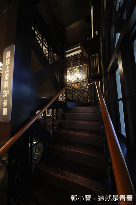 | 旁邊的樓梯是直接通往三樓參觀工廠的動線規劃,通往二樓的樓梯也很古典,大面積的落地窗讓人有點想站在這樓梯旁拍照。 |