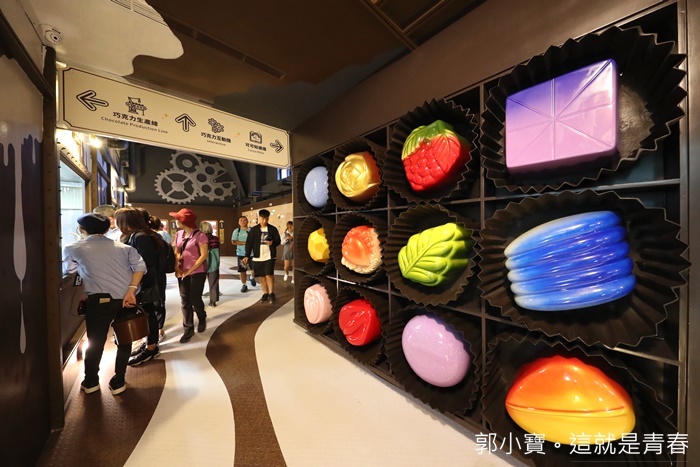| 繼續往三樓走就是她們的巧克力製造工廠了,走道弄得很像是巧克力通道一般,三樓的導覽員不少,會跟遊客仔細的介紹整個生產的過程跟程序,也會提供許多關於巧克力的知識,這才是來觀光工廠最主要的目的吧,不過只是想來拍拍網美照我也不反對啦! |