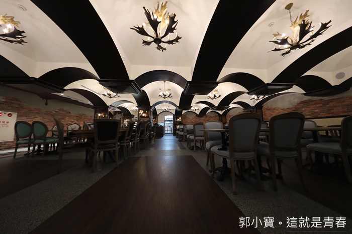 | 二樓最主要分成三個空間,最大的空間是地窖餐廳,但是就算你沒有吃飯也可以在這邊休息喝咖啡,園區雖然沒有特別大,但是座位區算是非常多,盡量能讓客人坐下來休息,地窖餐廳都那麼美,燈飾也都很歐風,用鹿角造型帶出濃濃的城堡風,連休息的空間都可以打造成這樣,但是假日的時候據說一整個人滿為患XD |