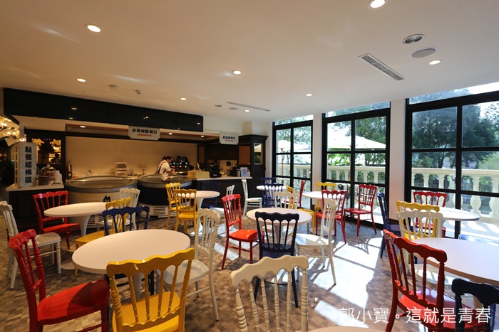 | 二樓最後的一個空間就是超繽紛的冰淇淋空間了,整個二樓目前除了DIY教室以外幾乎都是座位區,上次我朋友說來這邊光是買個冰淇淋就要排隊排超久,因為試營運真的太多人潮來了,妮娜觀光工廠也是一整個措手不及。 |
