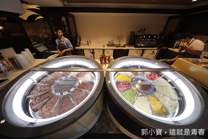 冰淇淋機會轉動真的好吸睛,感覺像是太空艙一般,兩台冰淇淋機一台是放滿超多不同國家的巧克力,另一台是放各種口味的水果冰淇淋,面對這滿滿又多樣的口味,連我都要考慮很久要哪一種口味,難怪排隊人潮會越來越長XDDD