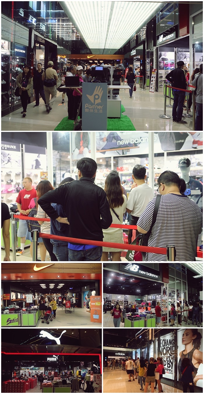 | 三樓運動品牌街當然也是同樣的爆滿人潮,幾乎每個品牌都有做超大的折扣,每個專櫃都還有控制人流,有想要趁機搶一波便宜的新款商品就是趁現在了,新款商品直接當成特賣會,這樣的超值優惠大概就只有這一次的大江購物中心週年慶了。 |