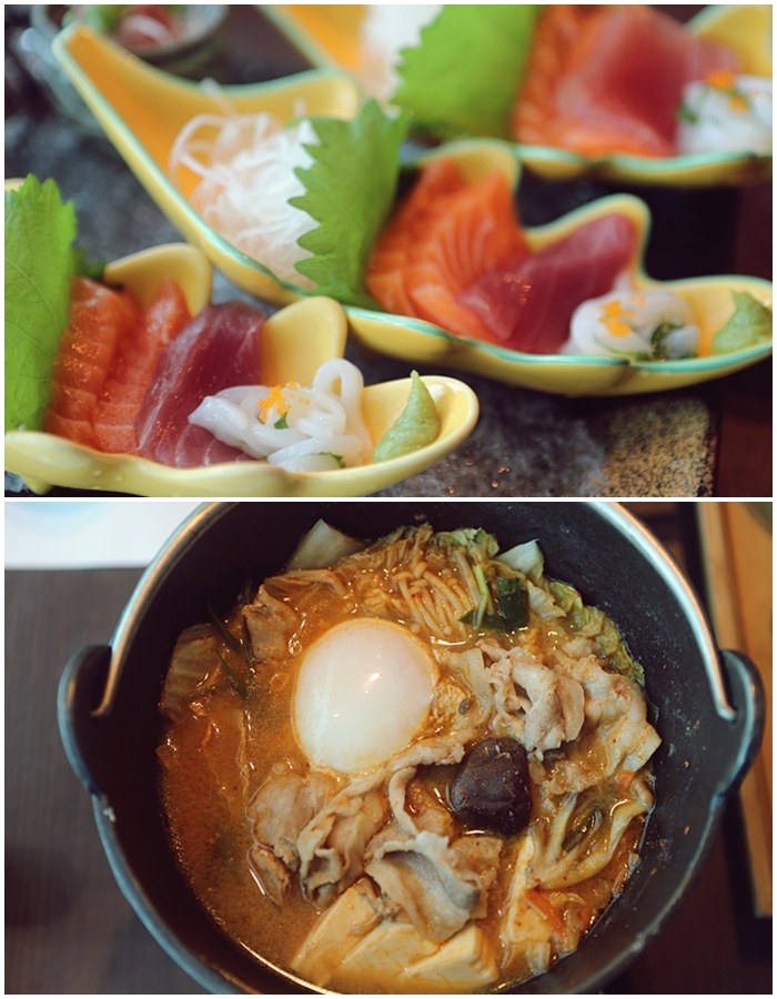來日本料理店就是要點生魚片啊,我爸媽是熱愛吃生魚片的人,藍屋的生魚片都很新鮮,且組合一式三份,也有其他種組合的生魚片組合,老婆點的牛肉壽喜燒鍋很不錯,加上它們家的米飯都是使用日本越光米真的很好吃! |