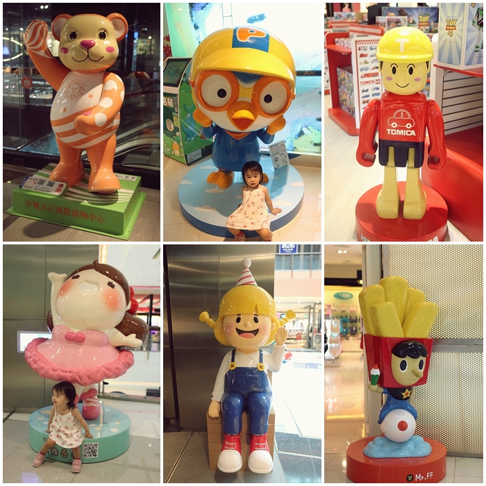 | 大江購物中心真的花了很多心血跟精神在公仔上面,也因為花費重金加上妥善保養,所以才那麼多可愛的公仔可以陪伴小朋友拍照,各式各樣的公仔真的很可愛,當然也是小朋友最愛的合照地點,光是這一點我就覺得很不容易,因為每個公仔看起來簡單,但是其實要實際製作出來可都要花上大把大把的錢才有辦法做得那麼精美。 |
