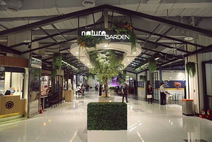 | 美食街裡面不在是冷冰冰的桌椅空間,每一個地區的用餐空間都不一樣是大江購物中心美食街的特色,搭配的水造景或是布幕水牆的氛圍,還有四處都有自然的陽光照射,這樣交織的明亮光線讓人用起餐來更是愉快,選擇自己喜歡的用餐空間,所以即使人多也不會顯得特別吵雜,美食街裡面除了公用空間也有很多大品牌的街邊店,讓消費者的選擇度大大的提升,而不是一般進到美食街都是沒看過的品牌,似乎好像只能任人宰割的感覺。 |