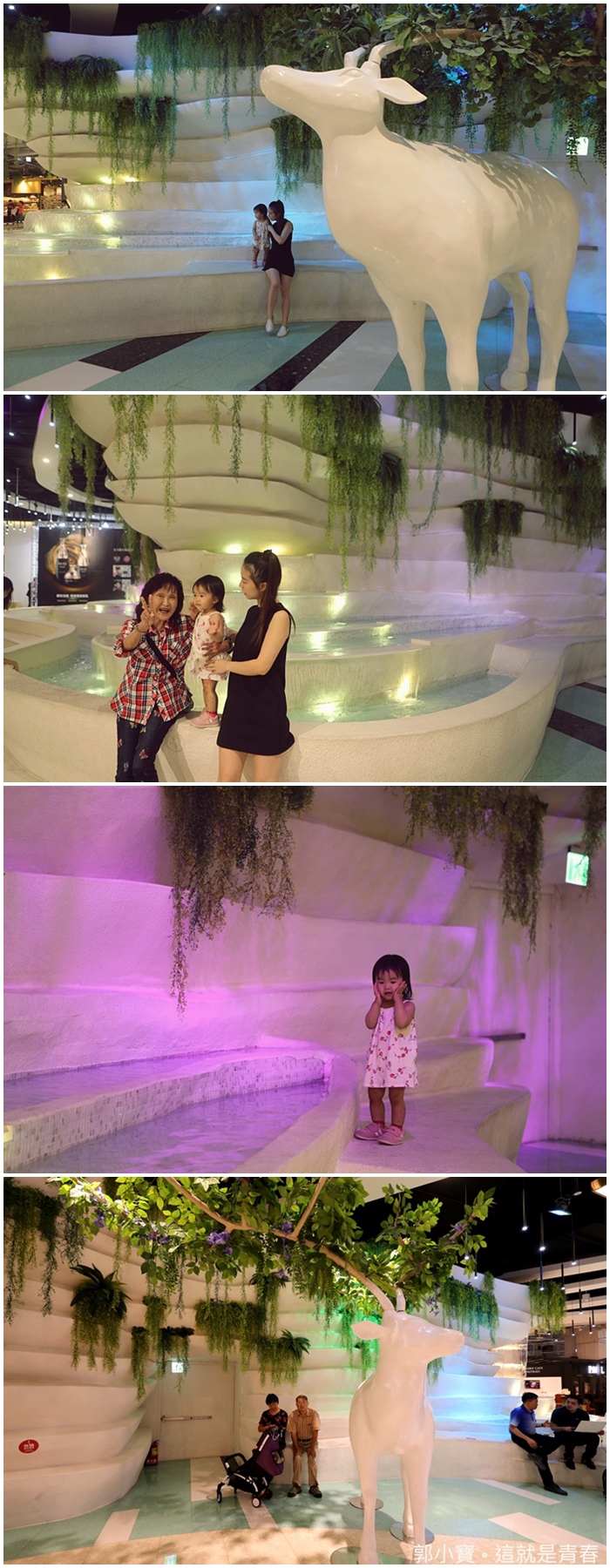| GB樓的美食街廣場旁還有這麼一大座的地下水池,這邊也是很多人逛累休息的地方,聽著流水聲就讓暑意消散了一大半了,連我家Cola也超愛這個地方,對於百貨公司或是購物商場來說,坪效是很重要的,尤其大江國際購物中心現在的人潮超級多,但是他門依然願意保留那麼多的公共藝術空間提供給消費者真的算是很不簡單! |