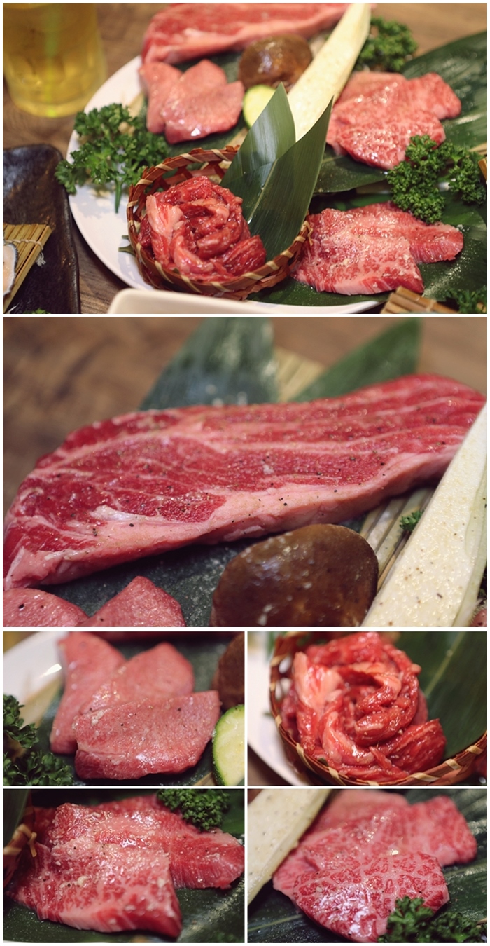 | 五款牛肉肉品包準你大呼過癮,除了還有一份厚切冷藏牛舌以外,另外還有三款日本和牛及一份牛排,看看這牛肉的油脂紋路及肉感就知道超新鮮的,看得我口水直流。 |