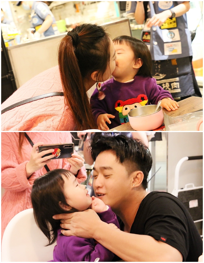| 乾杯燒肉內一直都有的親親豬五花的活動,只要親親超過10秒就會送一份豬五花,一口爐子可以參加一次,當天我們開了兩口爐子,所以我們就有兩份可以拿,女兒你有需要那麼抗拒老爸親妳嗎XDD |