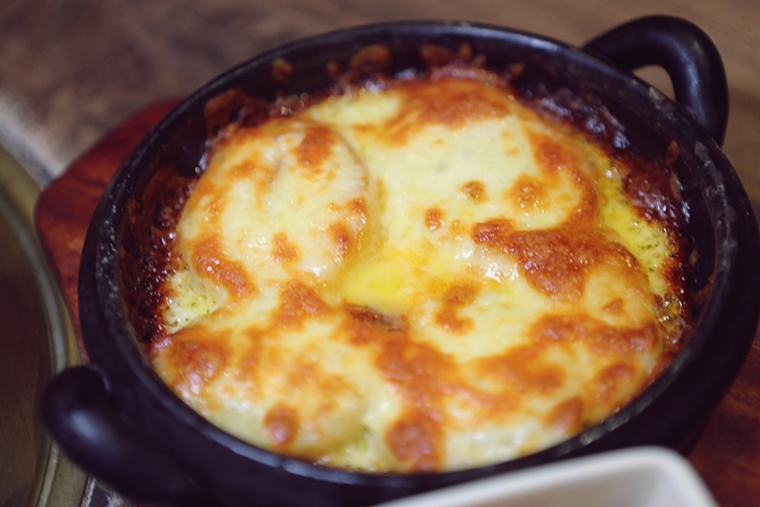 | 豬肉的部分則是採用最高等級的伊比利豬,三個部位分別是霜降、肋條跟豬梅花,豬肉的部分表現也很好,伊比利豬本身就有自然的香甜味,油脂不油膩且鮮甜。 |