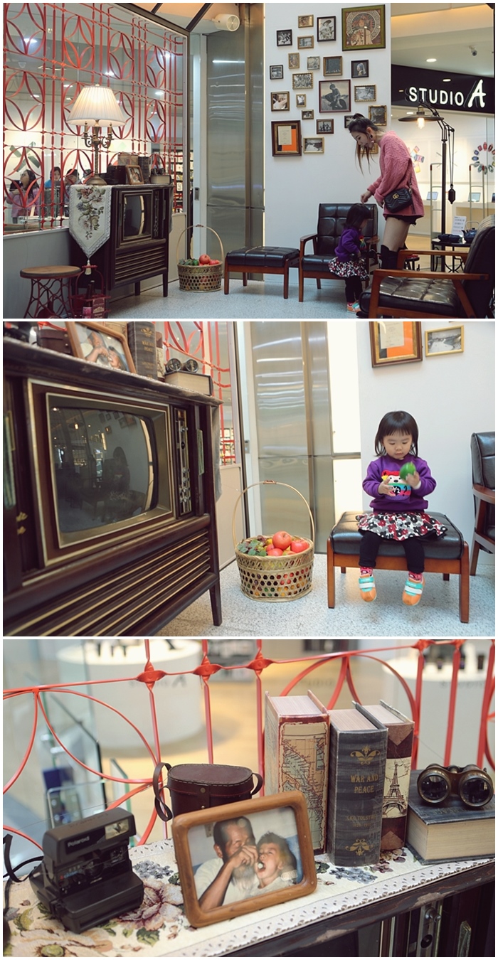 | 真不知道去哪裡找到那麼多的老東西,這種有木箱的映像管電視真的是完全小時候的回憶,電視上的老照片跟老相機都是現在的小孩子沒有看過的老古董,整個屋內的古樸感真的完全還原了五十年代的氛圍。 |