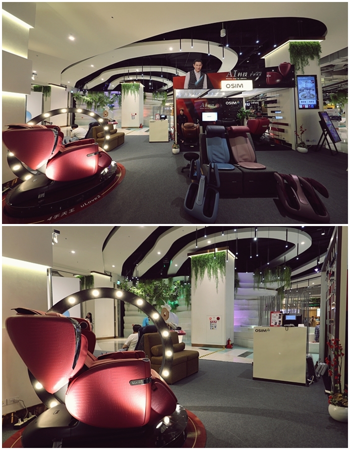 | GB樓層現在還有OSIM的登機特賣活動,打造出飛機的商務乘客艙,裡面放的就是該品牌的按摩椅。 |