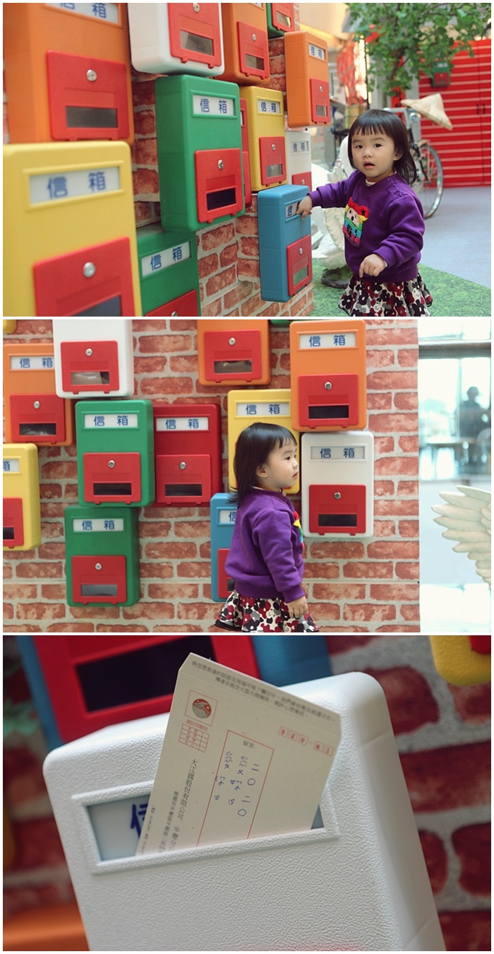 | 紅磚牆上密密麻麻的信箱真的很讓人懷念,旁邊還有明信片可以供遊客寄送,只要投入信箱後大江購物中心就會幫你投設到中央廣場的大燈籠上,這次中央廣場的天空多了很多天燈,晚上看的時候真的好美。 |