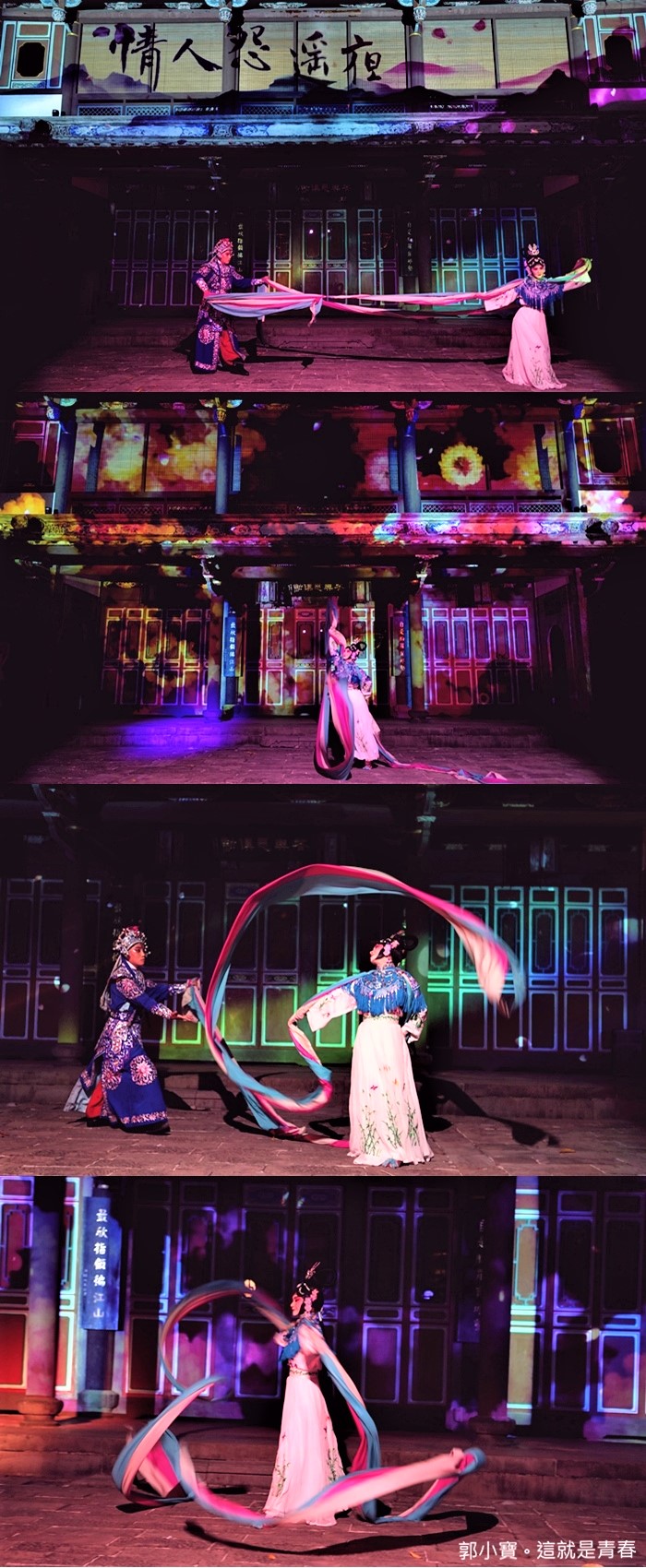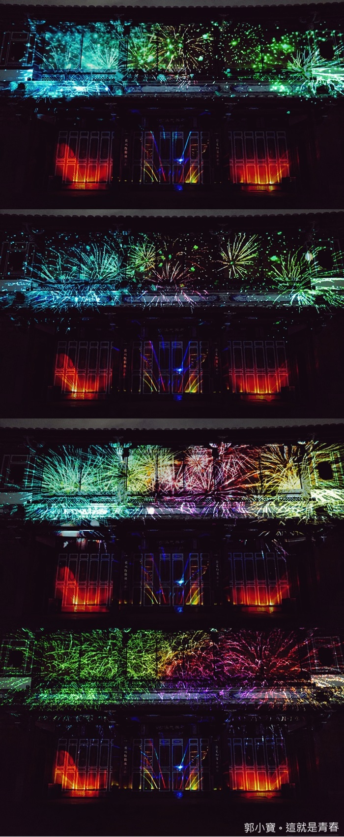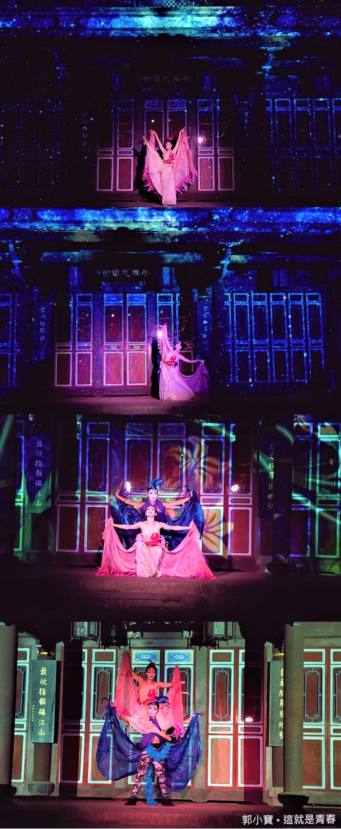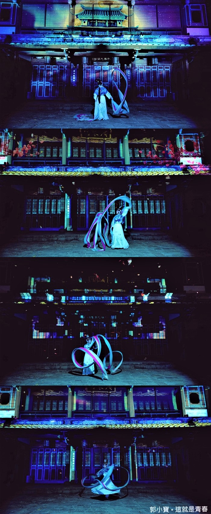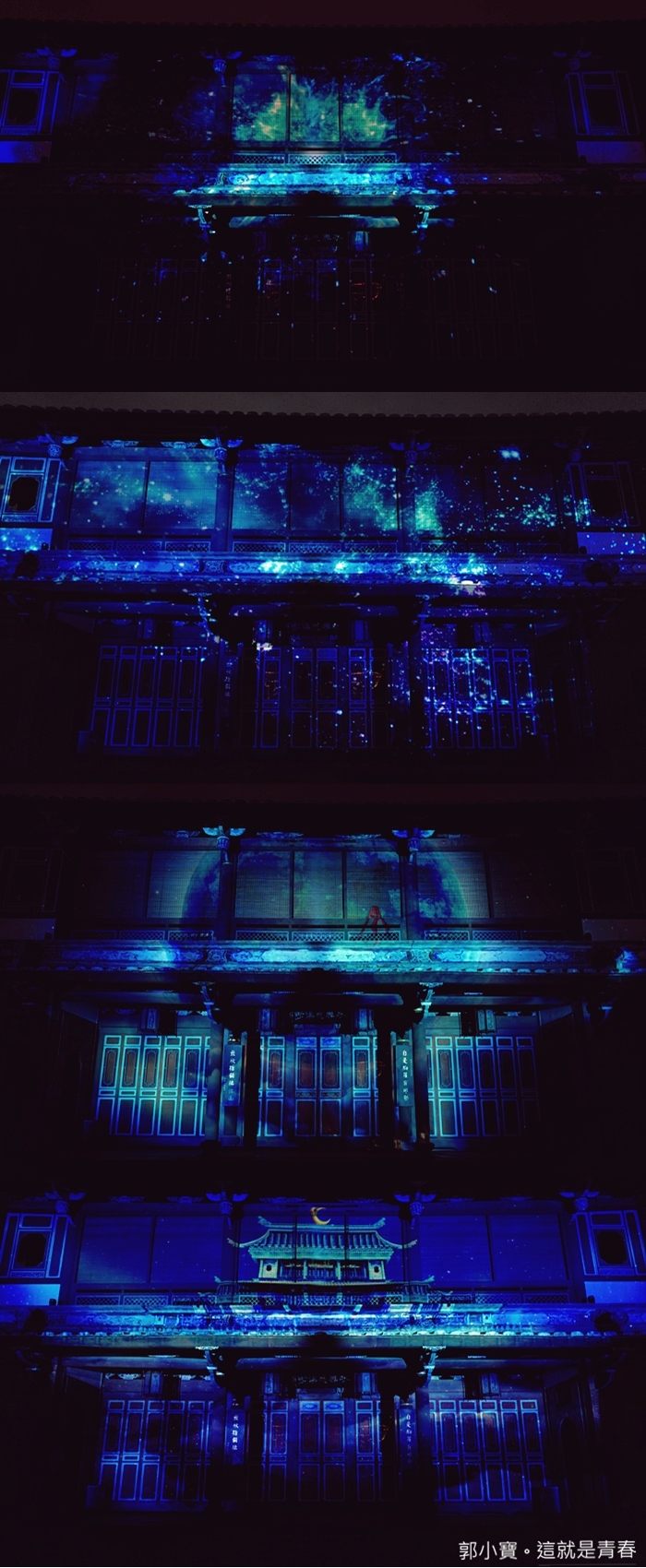 | 第一段就讓古蹟瞬間幻化成一整片銀河系,真的是太美了,看得我一整個目不轉睛,最後搭配來青閣的建築變成了一間皇城。 |