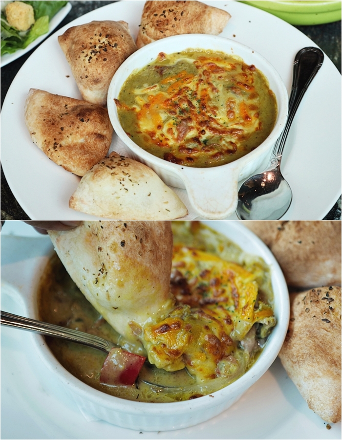 綠咖哩非常濃郁,搭配烤餅瞬間愛上,綠咖哩上面還有一起起司,烤餅也很不錯,放在嘴裡咀嚼的樂趣很多,喜歡綠咖哩的朋友千萬別錯過這道菜。 |
