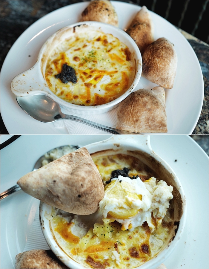 端上桌的時候就可以看到起司上面有松露,香氣一整個散發整張桌子,讓人欲罷不能,挖起馬鈴薯泥跟烤餅一起食用,綿滑的馬鈴薯泥超愛。 |