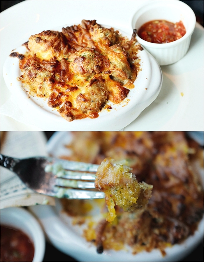 本來以為式古拉爵早期的招牌螺肉,吃下一口才發現原來是雞肉,一口一個非常討喜,小朋友跟女性朋友都很喜歡,蒜香跟起司味非常重。 |