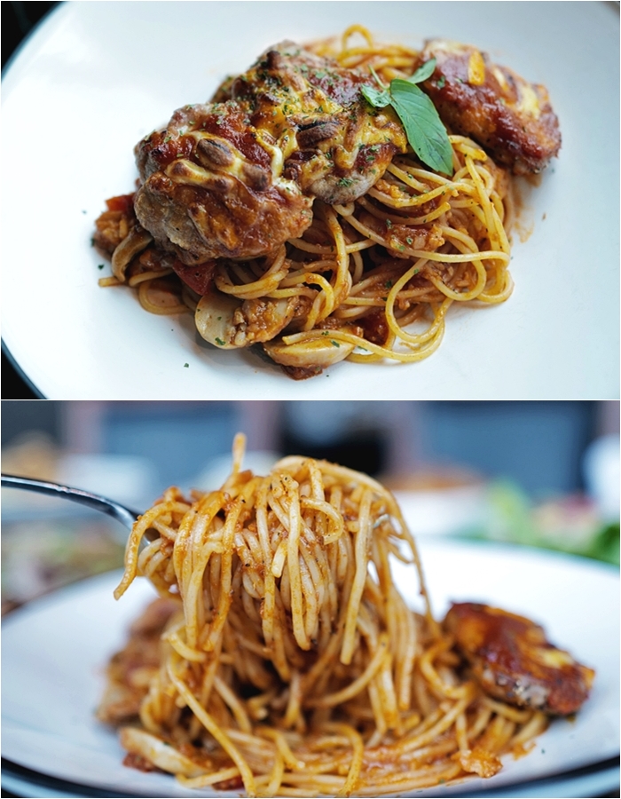 重量十足的豬菲力看起來就很適合男生,菲力入口軟嫩,搭配紅醬圓麵大口吸進嘴哩,我喜歡古拉爵的義大利麵收汁收的算乾,是滿道地的作法,每一跟麵條都吸飽了醬汁。 |