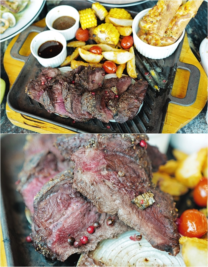 比起牛排我個人想先推薦一下它們家的奧勒岡烤餅,真的很值得試試看,很好吃耶,嫩肩牛排吃的到肉塊的爽度,噴發的肉汁也讓人滿意。 |