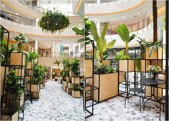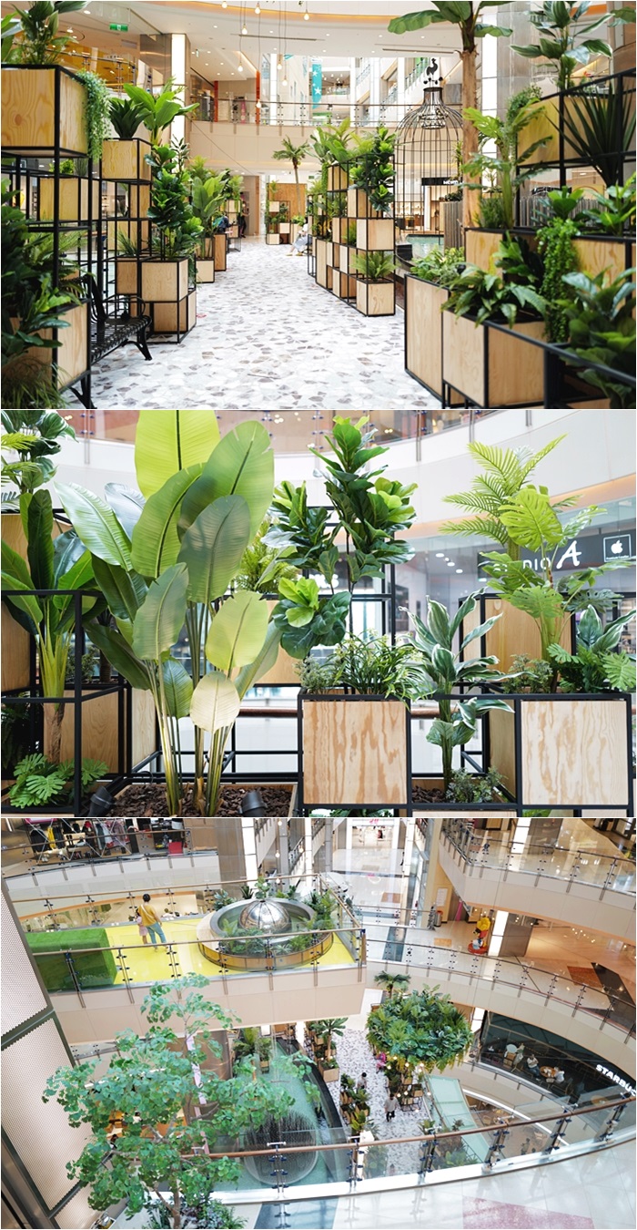 | 逛到一樓就可以看到大江這次春夏藝術裝置的主題,有點像是樟宜機場傳地頭樣的主題跟氛圍,打造出專屬大江的室內溫室植物,讓人彷彿走進熱帶植物森林般,讓整個春夏季節充滿了購物商場。 |