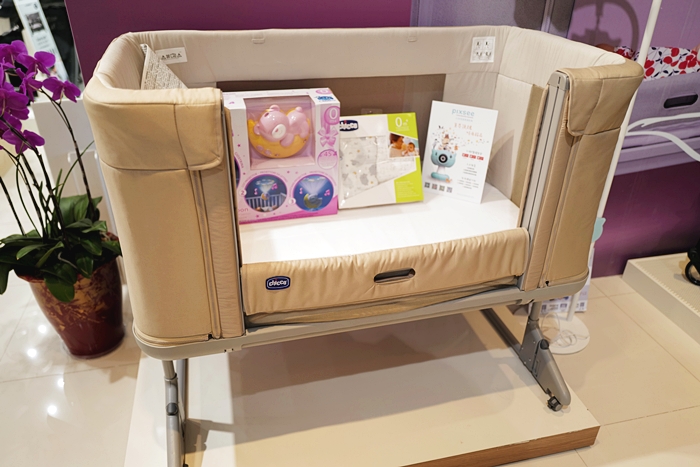 | 這可以跟床鋪並高的嬰兒床我超喜歡,當初買的是另一款旗艦款,但是這一款真的對於媽咪來說比較方便,新生兒在半夜吵鬧也可以即時轉身安撫。 |