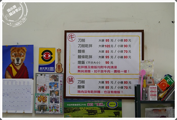 | 價目表~~寶妹每個時期愛吃的東西都不一樣!小時候最愛他的牛肉燴飯,中學的時候都點刀削牛肉麵,出社會後因為口味愛吃麵條就比較常點麵條了XDDDD |