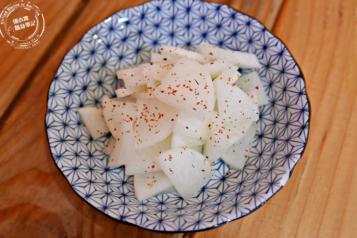 | 道地的台灣口味,配上日式器皿,撒點七味粉,小菜也可以很精緻,別以為是賣相取勝唷!他們家醃漬的味道超好,清爽脆甜清脆爽口,甜甜微微酸開胃又解膩,冰冰涼涼的在嘴裡滋味超級棒的,這碟小菜在我心裡是第一名了,外帶回家放冰箱一樣好吃,推薦大家可以嘗試看看唷! |