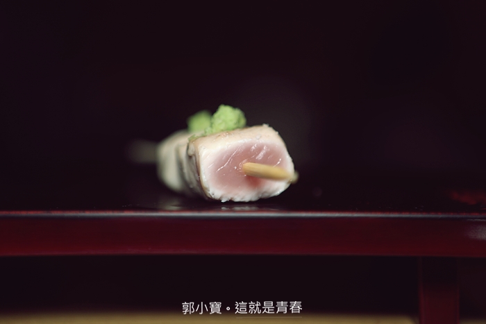 | 我個人很喜歡的山葵里肌肉,我家太妃對這一串比較無趕,但是我超愛,烤的半熟的狀態,搭配山葵入口真的超好吃,充分保留里肌肉原本的口感,些許的肉汁跟山葵一起變得更有層次的味道。 |