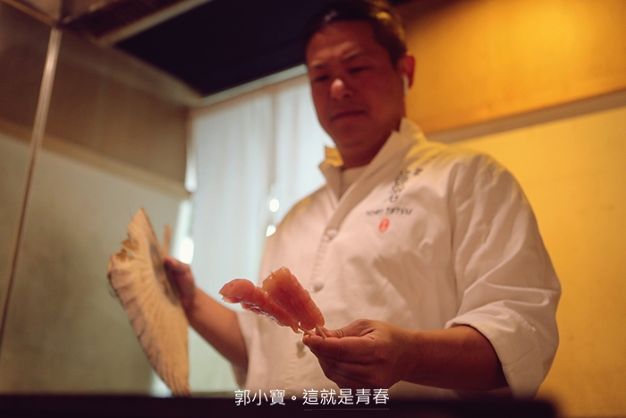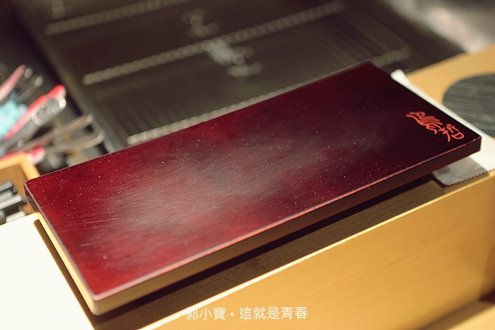 | 板前每個客人前面還會放置食材板,剛考出來熱騰騰的串燒工作人員會放在食材板上,有點像是日本壽司的板前作法。 |