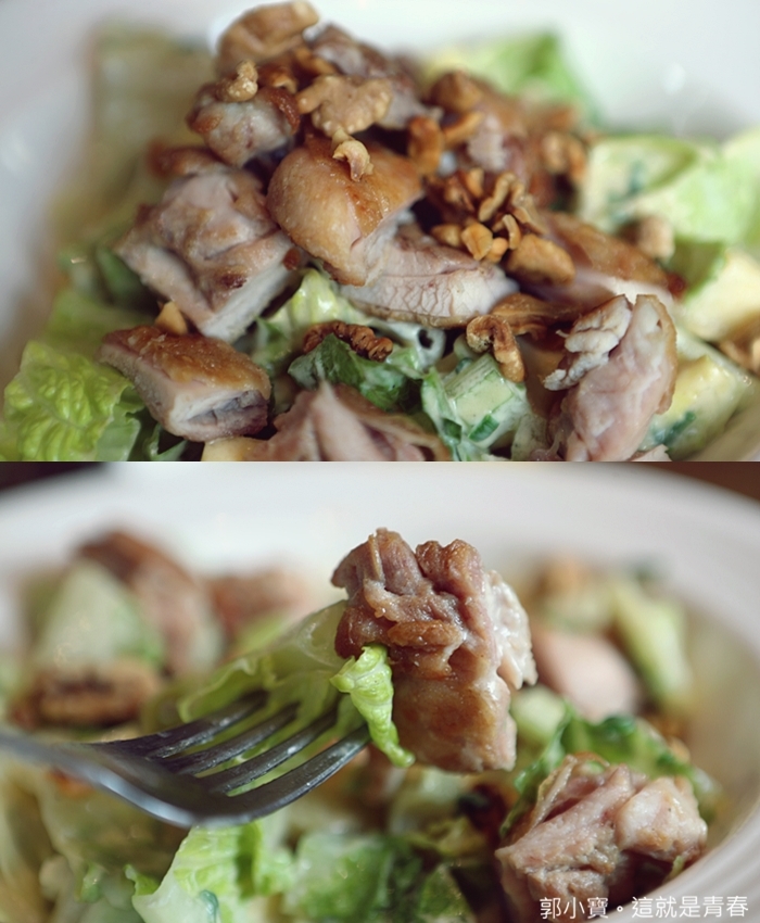 | 雞肉給的量真的沒有在客氣的,且吃起來非常揪C嫩口,應該是使用雞腿肉,食量小的人可能吃這沙拉就會飽了唷,而且這邊全部都是單點的,很好控制自己要吃的分量。 |
