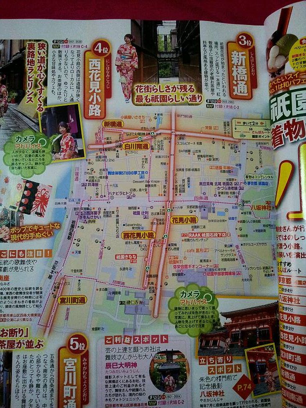 1。白川南通 2。花見小路 3。新橋通 4。西花見小路 5。宮川町通