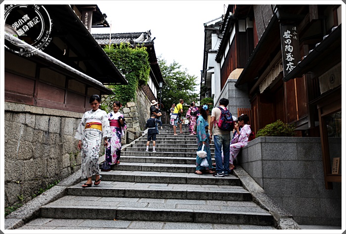 這稱為石疊路也是坂道的由來,走在這樣的石疊小路上格外有感覺與昭和時期的懷舊風情,難怪這五大坂道會那麼的熱門,寧寧之道大概是夏天來走最有感覺了,走起來兩邊都是蟬叫聲。 |