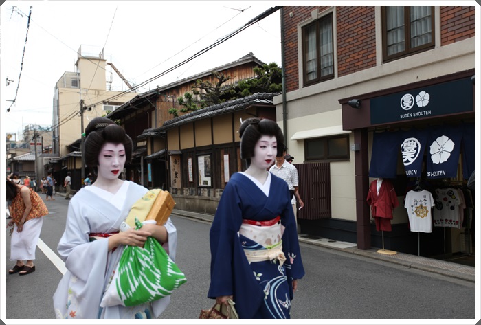 在這邊幾乎常常可以看到真正的京都藝妓穿梭其中,有傳言說是京都府付錢找人特意妝扮藝妓的樣子跟遊客拍照的,但是不管是不是觀光的原因,看到真正的藝妓總是感覺特別的新奇。 |