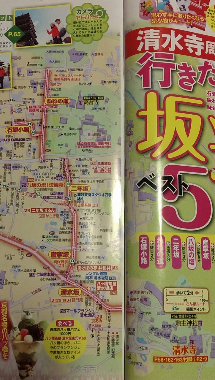 附上雜誌的簡易版散策地圖給大家參考,其實沒有這地圖大家也都是差不多走這條路,只是比較容易錯過石塀小路,小寶以前再走其實也沒走到寧寧之道,幾乎都是從二年坂開始走,因為畢竟八坂神社側門出來並沒有直通寧寧之道,寧寧之道在旁邊的另一條路,因為有這張簡單的散策地圖大家可以更了解五大坂道的位子唷