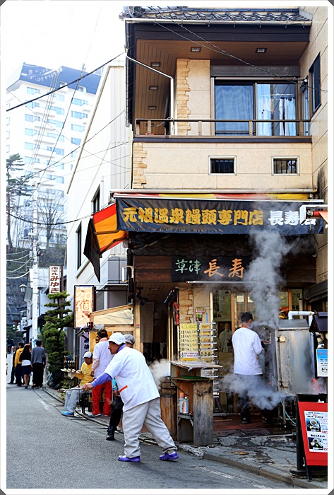 草津溫泉最有名的溫泉饅頭就是這一家了,這一家還滿低調的,而且完全不用在路邊發饅頭試吃,每次經過都看到店員一直在準備宅配的饅頭,它們家的饅頭真的比較好吃,饅頭啤相當鬆軟可口XD |