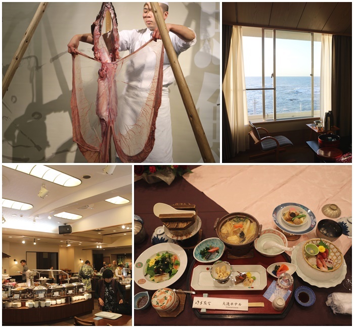 | 相當不錯的一家飯店,房間都有海景可以看以外,還有殺安鏮魚秀可以看,重點還是安鏮魚火鍋阿,房間屬於日式榻榻米房,早餐也非常豐富以外,距離大洗神社步行只需要5分鐘內就可以到達,飯店內的設施也很齊全,也有會說中文的工作人員,溝通非常方便呢!! |