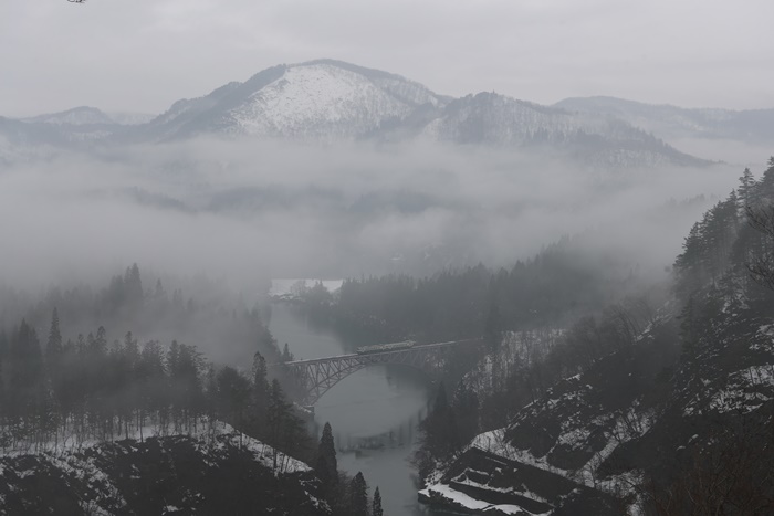這許多人想要一年四季都親眼看到的第一只見川橋梁,橋梁的兩端車站分別是會津桧原跟會津西方兩個車站,步行時間都會有一點久但是也是最直接,道の駅尾瀨街道みしま宿本身是個公路休息站,也是拍只見線的最佳地點,自駕就非常方便,有機會來到福島真的要來親眼看看這絕美的景點! |
