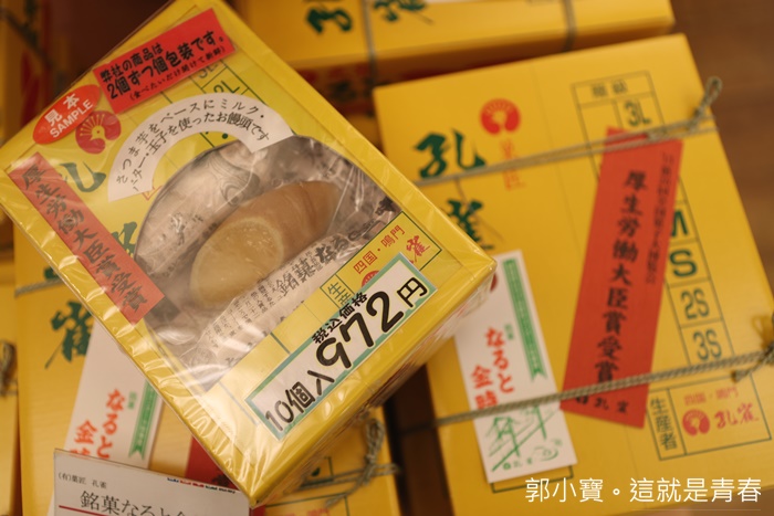 | 如果要買鳴門金時製作出來的餅乾或是蛋糕伴手禮,德島人一直跟我說一定要買這個品牌,最有名的金時饅頭已經被搶光了,德島人一直說認這個狸貓頭的LOGO就對了,老實說我真的看不太出來那個感覺像日文字的LOGO哪裡像狸貓頭了,據說這一家全部的產品幾乎都是以鳴門金時為主,且拿了很多大賞。 |  |