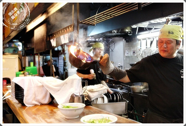 | 每人面前會放好一碗拉麵,接著老闆就開始要表演噴火秀了!!