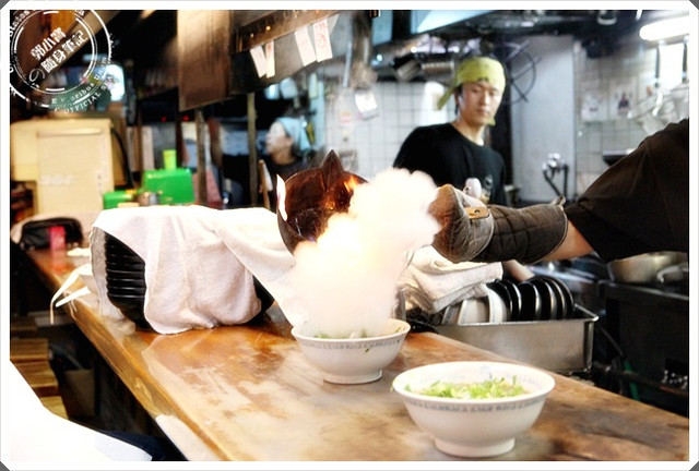 倒下去瞬間會先冒起大量白煙,回來後看照片才發現,我說拉麵學徒妳也閃太遠了吧!!!