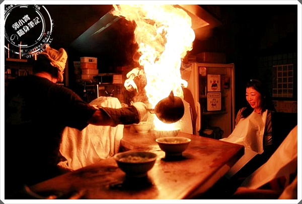 老實說老闆鐵鍋裡面放什麼我也不是很清楚,但是看它每碗拉麵倒下一點就火光四起。