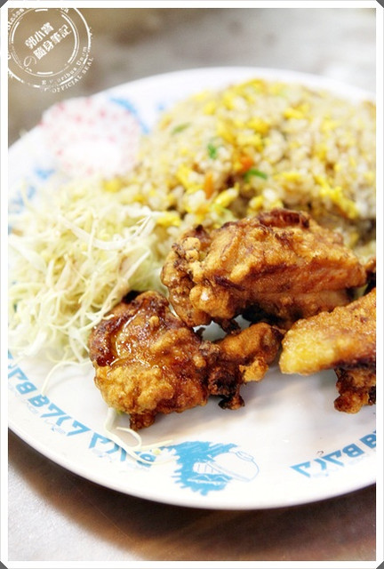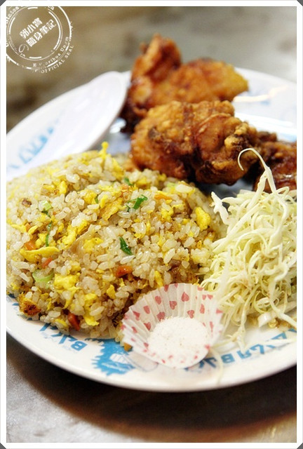 炒飯跟炸雞是放在同一盤裡面的,還有一些高麗菜絲,
