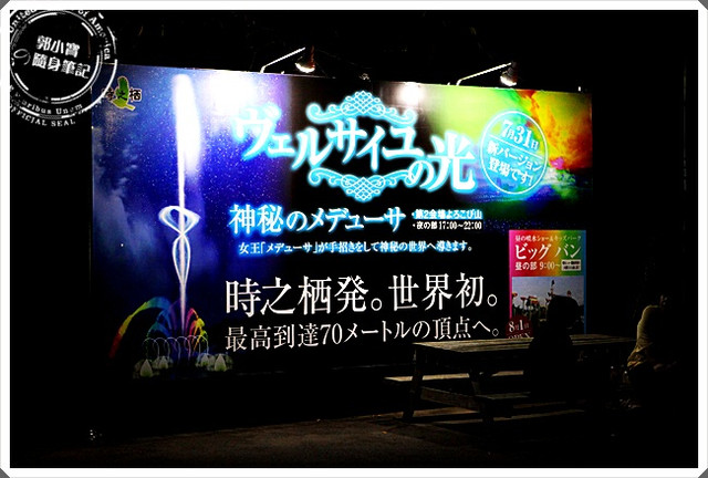 本來是要直接去洗溫泉的,但是因為溫泉要經過時之晒廣場到達另外一棟飯店, 結果才發現了原來時之晒廣場那麼漂亮,而且園區非常的大,我們就這樣逛完了大部份的園區 才心不甘情不願的去洗溫泉,時之晒晚上的燈光非常的多變化,洽且又逢萬聖節, 所以園區裡面佈置了許多萬聖節相關造景,非常的有氣氛。