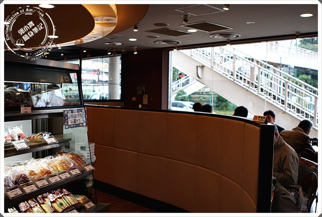 門口一進入的地方就是禁菸區,旁邊的櫃檯有賣麵包,