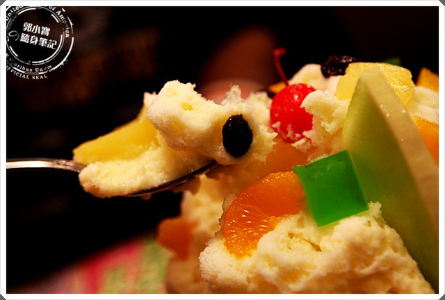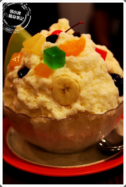 裡面的配料有水果跟果凍等,不過看起來似乎只有香蕉跟花蜜瓜是新鮮水果,