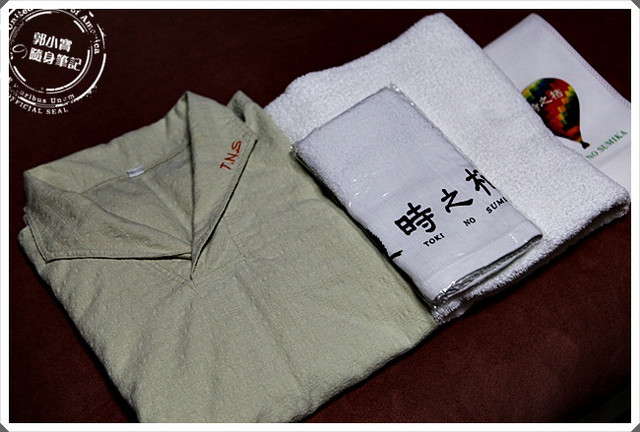 | 浴袍跟毛巾還有一個隨身袋,方便客人可以整袋帶著去洗溫泉 |