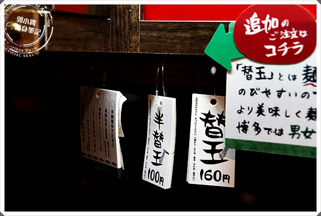如果你要加麵記得撕下"替玉"的牌子,在桌子的前方就可以看到,
