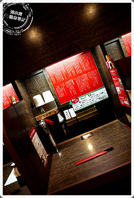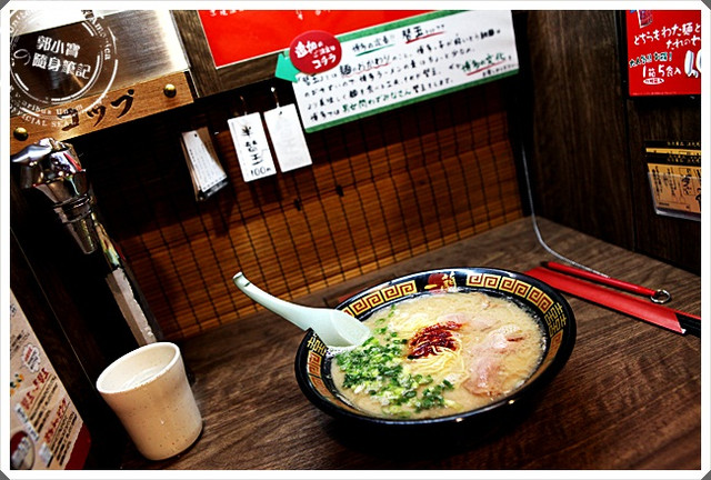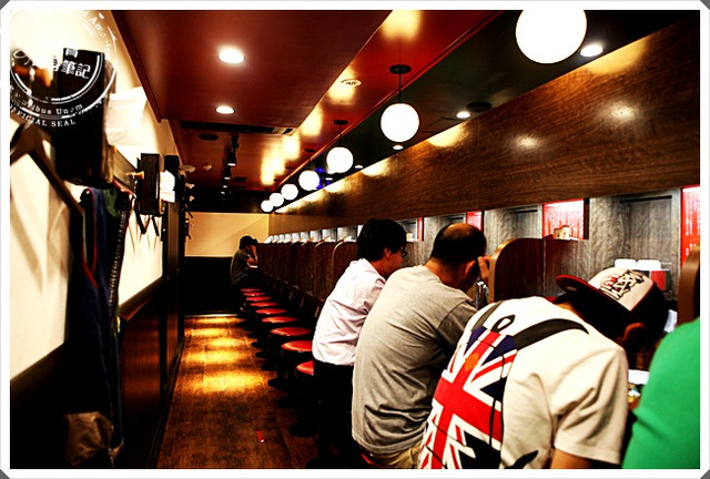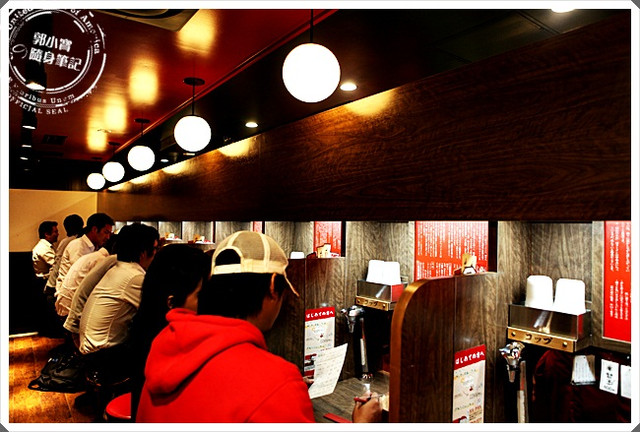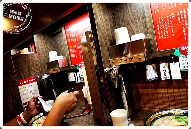 | 一蘭拉麵是這樣一格一格的隔開的,為了保有隱私感可以忘情的大聲西哩呼嚕的吃麵, |