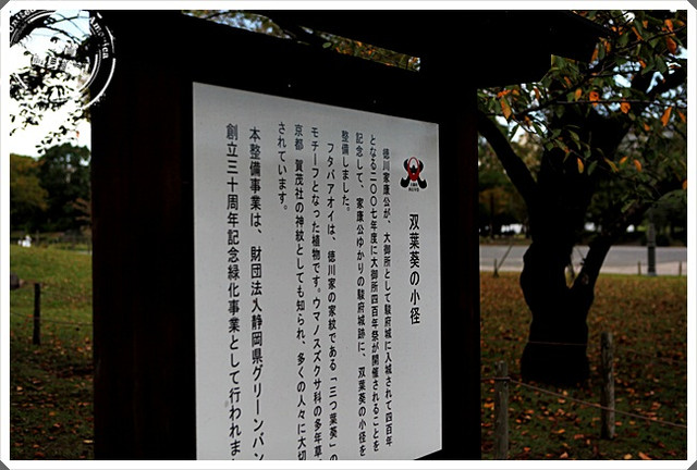 下次來到靜岡,可別錯過這離靜岡車站才短短的10分鐘路程的駿府公園,可以讓你體會一下當初的天守閣, 在忙碌的行程中,在充滿綠葉及樹林微風的地方,放鬆一下心靈吧!!