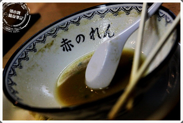 這不是我捧場把它的湯頭喝完,而是兩碗集中一碗,果然把湯喝掉後就可以看到店名了。 元祖赤のれん節ちゃんラーメン整體而言算是我在日本吃過比較特別的拉麵店了,也不是難吃, 是我真的不習慣這口味,但是我真的知道有些人很喜歡這樣的濃湯,麵條跟叉燒都有很好的表現, 我看周圍的日本人都很喜歡這個湯頭,幾乎每個人都喝的乾乾淨淨,還一付意猶未盡的樣子, 所以下次來到福岡也可以來試試看這個超濃湯頭的元祖赤のれん節ちゃんラーメン。