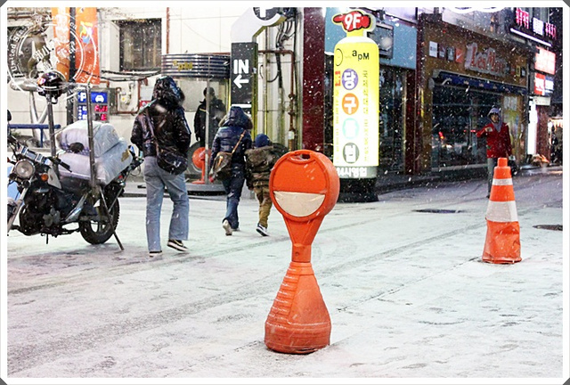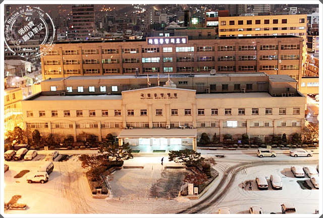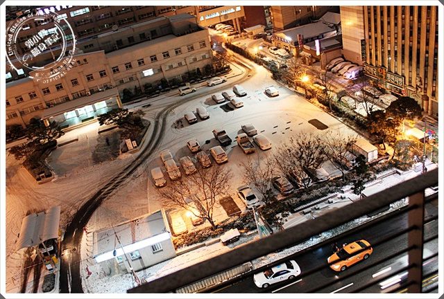 | 底下已經成為白雪一片了,我們住的飯店對面似乎就是首爾理面比較大的醫院,白雪覆蓋了整個停車場。 |